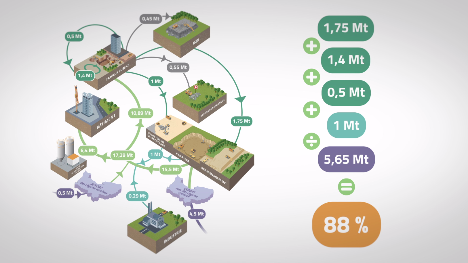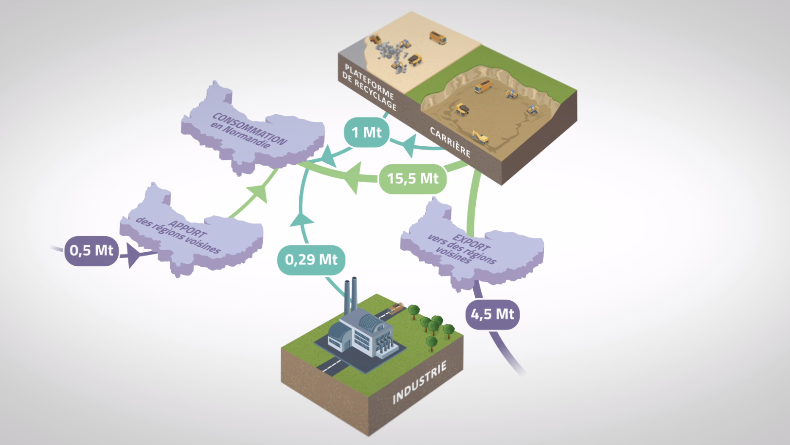 La production de granulats recyclés, animation d’un schéma en motion design.